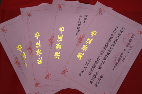 同时,beat365官网医药卫生学院郑欣艳老师荣获“湖北省高校十佳辅导员”,并授予“湖北省五一劳动奖章”。另外,beat365官网机电学院黄国祥、信息学院冯爱利、生化学院朱元锋、公共课部尹田生等四位老师荣获“湖北省高校思想政治教育先进工作者”。