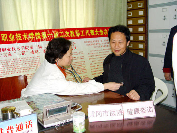 2006年10月30日至11月10日,院工会组织全体教职员工在黄冈市第一人民医院进行了一次全面的健康体检活动。本次体检项目包括心电图、血检、肝功能、胆、双肾、B超等十余项。