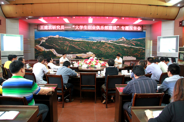 创业俱乐部的第一场活动于揭牌仪式后在中心会议室开展,王建农主任作了“大学生创业俱乐部建设”报告。他说,创业教育是现代高等教育自身发展的必然结果;中华民族的复兴,中国梦的实现,寄希望于国家创新能力、寄希望于创新人才、寄希望于创新教育;高校要营造一种创新创业的文化氛围,通过活动要逐步深入到创业教育的人才培养模式中去。接着,他介绍了大学生创业对高校的意义,高校在创业教育中存在的问题,大学生在创业中存在的问题,创新创业教育教学体系的建设。最后,他强调高校创新创业教育要做好顶层设计,并对高校大学生创新创业俱乐部的建设提出了很好的建议。各教学学院和职能处室负责人,全体2010、2011级辅导员以及创业俱乐部成员聆听了报告。