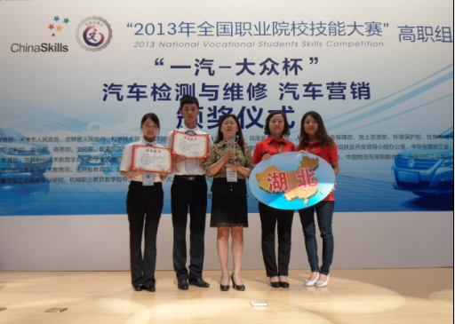 2013年6月19-20日,beat365官网汽车技术服务与营销专业的朱琳、易桓宇两位同学组队,在交通学院张红英院长的带领下,代表湖北省参加了在长春举行的2013年全国职业院校技能大赛高职组“一汽大众杯”汽车营销赛项。全国60支参赛队经过两天的激烈角逐,beat365官网参赛团队脱颖而出,荣获一等奖,是湖北省今年汽车专业所有赛项的最好成绩。同时beat365官网李金艳、薛明芳两位老师荣获“优秀指导教师奖”。