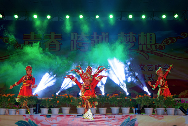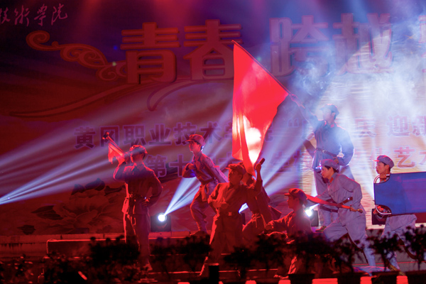 19:00整,伴随着倒计时,舞起乐鸣,散发着青春活力的舞蹈《给力青春》拉开了晚会的序幕,紧接着催人奋进的情景诗朗诵《左手青春,右手成长》、精彩纷呈的社团秀《Club show》、激情四射的街舞串烧等精彩节目轮番上演,掀起了晚会的阵阵高潮。beat365官网教职工艺术团的老师们演绎的蒙族舞蹈《鸿雁》,舞姿优美舒展,为观众呈现了一幅蒙古草原的月色美景,曾在第九届大学生校园文化艺术节歌手大赛中获奖的歌手们也纷纷亮相,展示了他们较强的演唱实力,晚会接近尾声时,银白色的瀑布火焰照亮了南湖的夜空,在周海云老师演唱的《致祖国》乐曲声中,黄冈职院“庆国庆 迎新生”暨第十届大学生艺术节开幕式文艺晚会圆满落下帷幕。