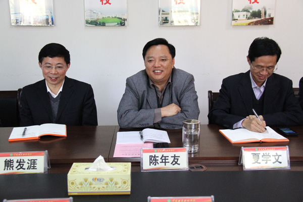 校长陈年友,副校长熊发涯,校长助理、建设办主任、教务处处长夏学文,办公室主任刘明涛,人事处处长刘学贵,后勤服务与保障处处长陈国安,成人与继续教育学院院长张世勇等热情接待了两校来宾,在学校行政会议室举行了三校校际交流座谈会,宾主间就高职院校专业建设、师资队伍建设、实训室建设及后勤管理等方面的工作进行了深入交流。
