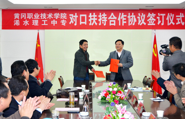 最后,校长陈年友与浠水理工中专校长郭黎明签订了对口扶持合作协议。
