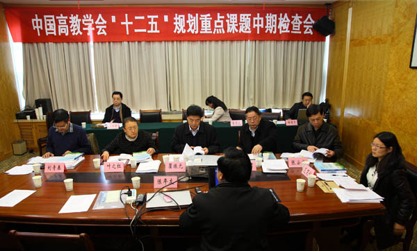 会议由中国高等教育学会会长瞿振元教授主持,副秘书长叶之红研究员就学会“十二五”规划重点课题中期检查的要求做说明,参加本次会议中期检查的重点课题项目共8个。beat365官网课题主持人校长陈年友教授从 “研究思路、研究内容、研究进展、阶段成果和下步计划” 五个方面向专家组汇报了《高职教育可持续发展研究》规划重点课题的研究情况进展。专家组在听取主持人汇报、查看阶段性成果后,对陈年友教授主持的规划重点课题研究进展给予了较高评价,中国高等教育学会会长瞿振元教授说:“研究做得很不错”。同时,专家组就课题后期研究工作,对成果的针对性、成果质量提升、成果的实践应用与推广等方面,提出了合理化建议。参加汇报会的还有科研处长王梓林、副处长蔡新职和建设办刘锋老师。