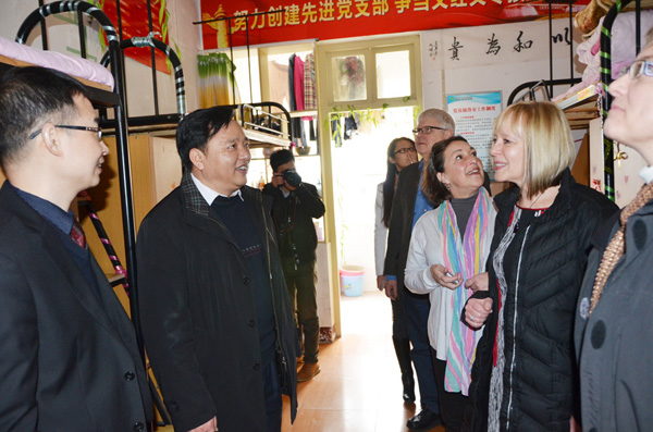 交流会前,蒂姆•尼尔森校长一行还参观了思贤阁教学楼、学生公寓及医药卫生学院、交通学院、商学院实训场所。