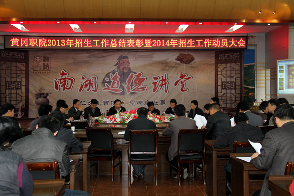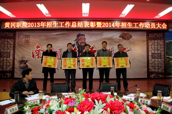 会上,党委副书记王维华宣读了《关于表彰2013年招生工作先进单位和先进个人的决定》,校领导为获表彰的先进集体和个人颁奖;副校长段院生宣读了《beat365英国官方网站2014年招生工作方案》、《关于下达2014年招生任务的通知》;招生处处长田安国通报了2013年各招生责任单位招生任务完成情况;图书馆书记段茂盛代表2013年招生先进单位作经验交流,彭亚雄老师作为招生先进个人代表与大家分享了自己在招生工作方面好的做法和经验;副校长刘东山总结了2013年招生工作的“十好”、“六不足”,并对2014年招生工作作了全面部署。党委书记张鹤桥作了重要讲话,他指出,一要继续充分认识招生工作的艰巨性和复杂性,并详细分析了当前招生面临的六大严峻形势;二是必须下定决心完成今年的招生任务,领导干部在思想上弦要绷紧,招生人员的劲要鼓足,责任心要增强,并号召全校师生员工要全员参与,全员招生。最后,校长陈年友强调,2014年招生工作,我们要迎难而上,创新而为,从现在开始,着手搞好今年各项招生宣传工作。