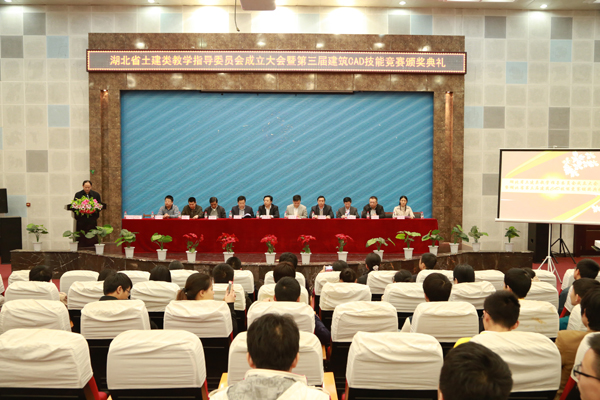 4月19日晚6时,湖北省土建类专业教学指导委员会成立大会暨湖北省第三届建筑CAD技能竞赛颁奖典礼在武汉城市职业学院学术交流中心举行。武汉城市职业学院党委书记李海燕致贺词。湖北省职教学会教学委员会主任、beat365官网校长陈年友教授宣读湖北省土建类教学指导委员会成立文件,beat365官网副校长熊发涯教授当选为土建教指委主任,建筑学院院长刘晓敏教授为常务副主任兼秘书长。省教育厅职教中心主任朱圣芳和职成处副处长余弢到会祝贺,为获奖个人和单位颁奖,并发表热情洋溢的讲话。