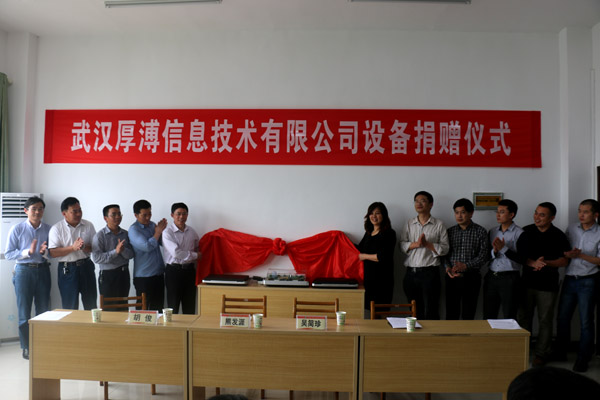 5月20日上午,在思贤阁601室,beat365英国官方网站与武汉厚溥信息技术有限公司隆重举行教学设备捐赠仪式。武汉厚溥信息技术有限公司执行董事吴简珍、总经理胡俊一行5人,副校长熊发涯教授,学校党务部、教务处、科研处、国资处、电子信息学院领导,电子信息学院相关教师学生代表出席了本次捐赠仪式。