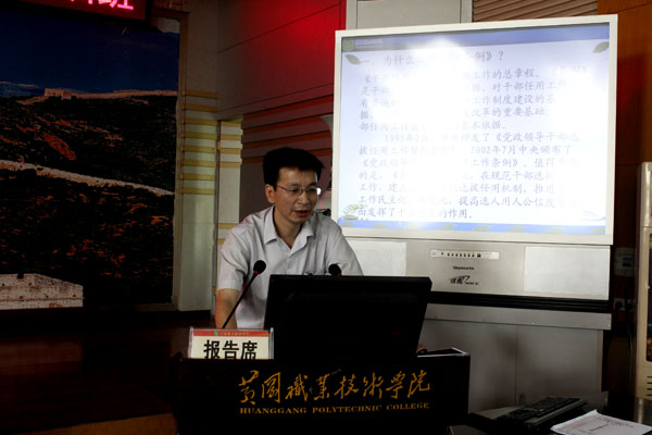会上,校长助理、办公室主任刘明涛全文领读了省委书记李鸿忠的讲话。随后,组织部长叶华光传达了全省组织人事部门学习贯彻《党政领导干部选拔任用条例》(以下简称《条例》)专题培训会议的基本精神。并从为什么要修订《条例》、《条例》重点改了什么、如何认识和评价新《条例》等三个方面对《条例》进行了详细解读。