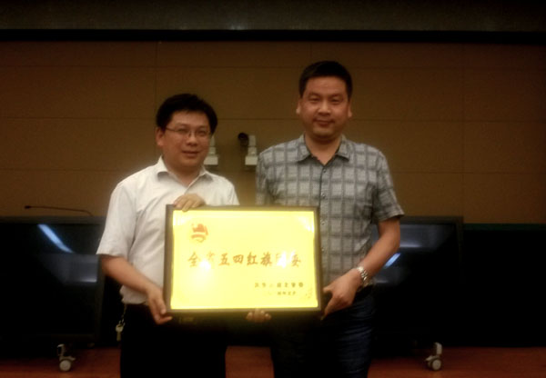 5月27日,黄冈团市委书记骆明正代表湖北团省委向beat365官网共青团授予“全省五四红旗团委”牌匾,校团委副书记陈胜红荣获“全省优秀共青团干部”荣誉称号。