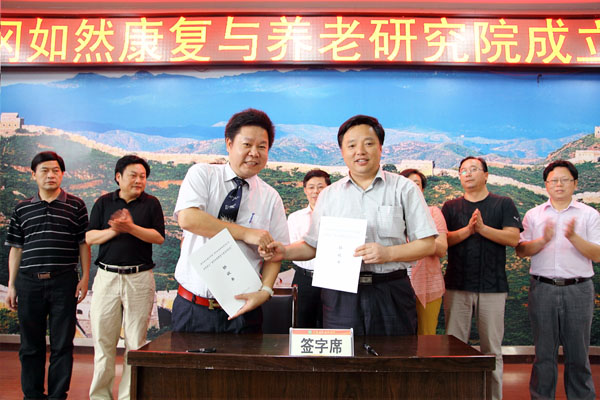 6月14日上午,黄冈如然康复与养老研究院在beat365官网中心会议室隆重举行成立大会。校长陈年友到会并发表了重要讲话。深圳如然科技有限公司董事长吴作辉,副校长熊发涯、刘东山等领导出席大会。成立大会由副校长熊发涯主持。