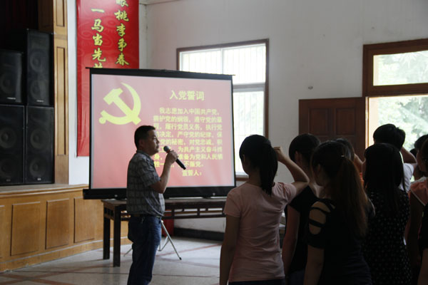 王维华同志作了重要讲话。他首先代表学校党委及全体教职工向新党员表示衷心的祝贺,并向全体新党员提出了六点要求:一是要始终不渝地践行党的宗旨、追行党的最高理想和最终目标;二是要始终保持共产党员的先进性和纯洁性;三是要不断加强党性修养,自觉改造世界观;四是要加强政治理论和专业技术知识的学习;五是要做群众的楷模、学习的榜样;六是要自觉接受党组织的教育、管理和监督。希望新党员在新的起点要更加严格要求自己,从人生追求上把自己的生命融入到党的事业中去,融入到无限的为人民服务的工作中去,做一名名副其实的中共党员,为党旗增辉添彩,为中华民族的伟大复兴建功立业。