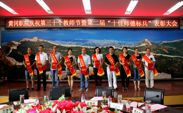 表彰大会上,党委副书记王维华宣读了《关于表彰“从教三十年”教师的决定》,副校长段院生宣读了《关于表彰第二届“十佳师德标兵”的决定》,副校长熊发涯带领全体参会人员重温了高等学校教师师德规范。党委书记张鹤桥、校长陈年友向从教三十年教师及十佳师德标兵颁发了荣誉证书。