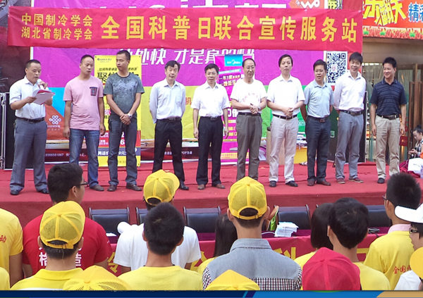 张定国感谢承办、协办单位的大力支持、介绍了中国制冷学会、湖北省制冷学会为响应全国科普日活动所做的工作,详细说明此次“制冷在你身边”科普活动的意义、内容及方式,希望广大市民踊跃咨询,并可进社区免费解决市民朋友们的实际问题。