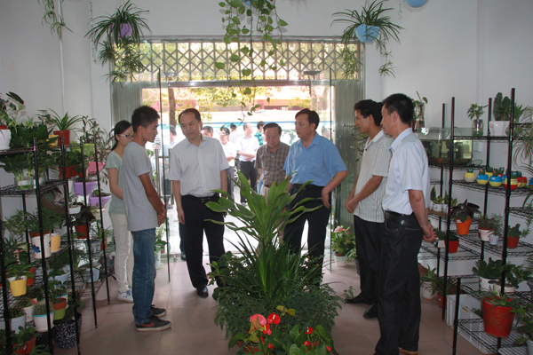 9月26日下午,省教育厅副厅长张金元、高校学生处处长谢新松、大学生就业指导服务中心主任张烈文一行来beat365官网视察大学生创业实践基地建设情况。在学校党委书记张鹤桥,校长陈年友,副校长段院生、刘东山等陪同下,张金元一行先后考察了学校创业实践基地和生物化工学院创业实践基地。