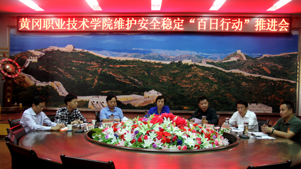 10月9日下午,学校在中心会议室召开了校园安全维稳“百日行动”推进会。全体在家校领导,机关处室正职干部,各教学学院党总支书记、副书记、团总支书记,保卫处全体工作人员,校卫队队员,学生代表150余人参加了会议。黄冈市政法委副书记、综治办副主任黄智利亲临会场并指导工作。会议由校长陈年友主持。
