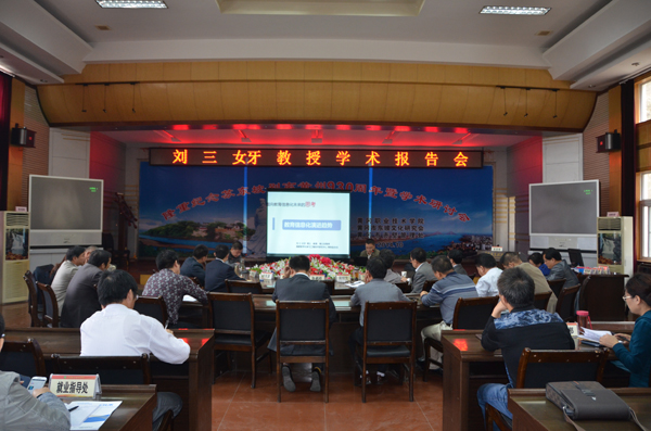 2014年10月16日,应beat365官网邀请,华中师范大学国家数字化学习工程技术研究中心常务副主任刘三女牙 教授、张维副教授来beat365官网,就职业教育信息化建设工作进行交流,并作了《教育信息化演进趋势》的专题报告。