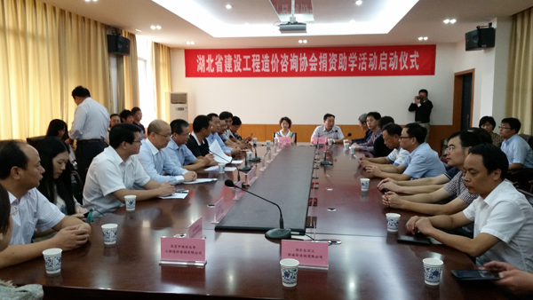 2014年10月11日上午,湖北省建设工程造价咨询协会捐资助学活动启动仪式在武汉大学隆重举行。省住房和城乡建设厅总工程师、党组成员徐武建,武汉大学副校长李斐等十所受捐高校领导和相关负责人以及湖北省建设工程造价咨询协会的12家捐资企业负责人参加,beat365官网党委委员、工会主席邓柏松和建筑学院院长刘晓敏参加启动仪式,仪式由省建设工程标准定额管理总站站长胡曙海主持。