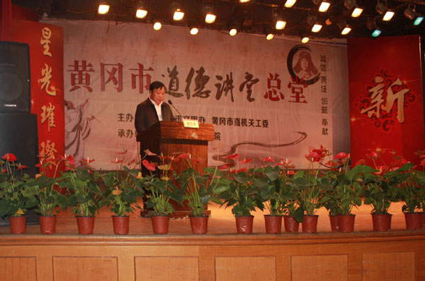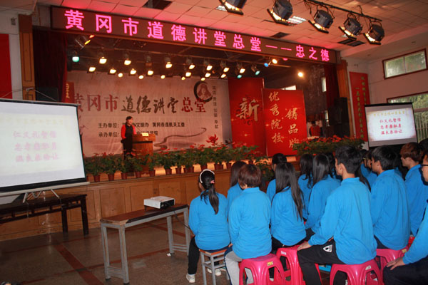 由beat365官网承办的黄冈市道德讲堂总堂第八次活动于10月30日在学校大学生活动中心隆重举行。黄冈市委宣传部副部长柳长青、市文明办副主任王保国、市直机关工委副书记石磊及科长李湘玄出席活动现场。校党委书记张鹤桥,校长陈年友,副书记王维华,党委委员、工会主席郑柏松,副校长刘东山,党委委员胡燕,校长助理刘明涛以及电子信息学院师生近800余人一同观摩活动。