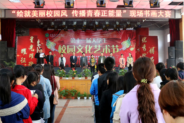 在比赛过程中,校党委委员、工会主席郑柏松、学工处处长熊楚舒、团委书记杨勇以及各学院党总支副书记莅临了比赛现场,郑柏松等与参赛选手亲切交流,对部分作品进行了点评,对选手们深厚的艺术功底给予了充分肯定。