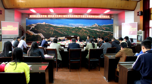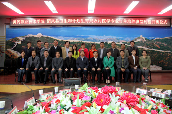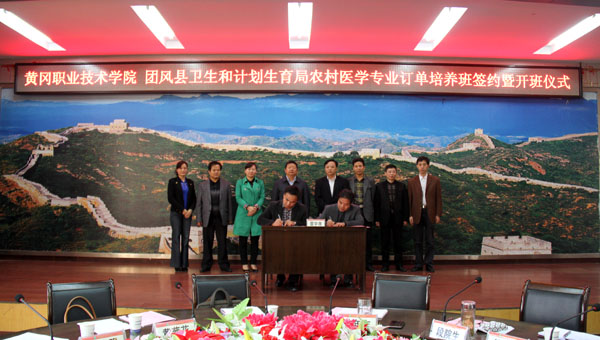 副校长刘东山代表学校与团风县卫计局局长吴富强在办学协议上签字。黄冈市卫计委副主任陈绍艺、团风县人民政府副县长黄菊花在会上分别作了重要讲话。黄冈日报、黄冈市电视台、鄂东晚报为活动作了宣传报道。
