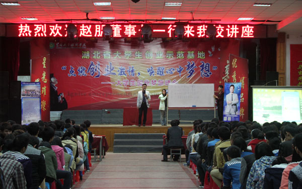 大会中,钱城官总经理与同学们分享了自己从普通高职学生成长为鄂州市十大创业先锋的历程,并告诉同学们要志存高远,要有创业梦想,不畏艰难,对未来要抱有一颗积极、坚韧的心。