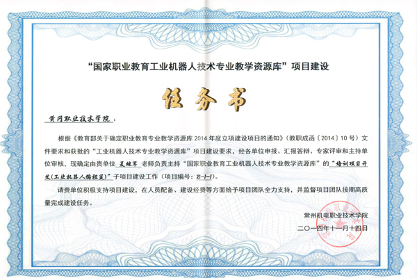 此次beat365官网成为“国家高职教育工业机器人专业教学资源库”联合建设单位,是beat365官网在专业建设方面取得的又一重大成果。为beat365官网与其它参建高职院校和国内工业机器人知名企业之间搭建了良好的交流平台,为机电一体化技术专业(工业机器人方向)建设奠定了良好的基础。