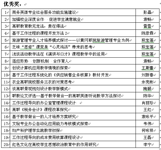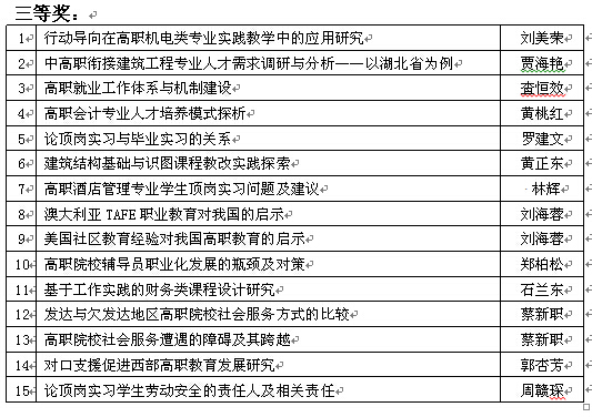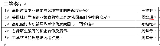 beat365官网43篇论文在中国职业教育学会“全国优秀职教文章”评选中获奖 来源:科研处 作者:江浚 发布时间:2016-02-23 08:43:43 浏览次数: 次 【字体:小 大】 为促进展示近两年来职教界所取得的优秀教育科研成果,总结职业教育教学改革的成功经验,交流和探索职教发展的新思路与新途径。中国职业技术教育学会职教期刊专业编辑委员会组织了第九次“全国优秀职教文章”评选活动。 经中国职业技术教育学会职教期刊专业编辑委员会学术委员会评审, beat365官网43篇获优秀论文奖,其中一等奖3篇, 二等奖5篇,三等奖15篇,优秀奖20篇。 beat365官网在第九次“全国优秀职教文章”评选中获奖情况 分享到: 【打印正文】