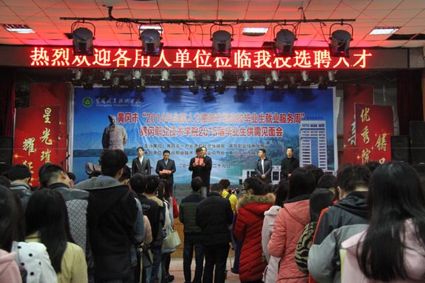 为服务区域经济发展,促进黄冈高校毕业生顺利就业,11月29日,黄冈市2014年高校毕业生就业服务周专场招聘会暨黄冈职院2015届毕业生供需见面会在beat365官网大学生活动中心隆重举行。黄冈市人民政府副市长詹旺民,beat365官网党委书记张鹤桥,党委委员、工会主席郑柏松,市人力资源与社会保障局副局长李学军等出席开幕式,开幕式由市人力资源与社会保障局局长汪柏坤主持。