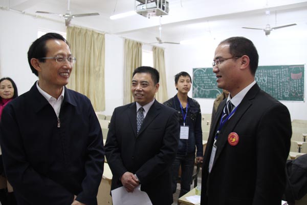 詹旺民作重要讲话。他代表黄冈市人民政府对招聘会的成功举办表示热烈的祝贺,对参加招聘会的单位和同学们表示热烈的欢迎。就业是民生之本、和谐之基、安国之策,市委、市政府高度重视高校毕业生就业工作,出台了一系列促进高校毕业生就业与创业的政策措施,当前黄冈市以建设大别山革命老区经济社会发展实验区,推进“双强双兴”的战略为契机,奋力实现跨越式发展,目前有规模以上工业企业将近1200余家,已建成各类开发区、工业园区55个,孕育企业3000多家,黄冈市经济社会的快速发展,需要大量的高技能人才。他肯定黄冈职院为社会培养输送了大量的符合市场需求、深受用人单位欢迎的毕业生。职业教育是青年成功成才的一个重要途径,他鼓励同学们留在黄冈就业创业,到企业一线,到基层建功立业,为人生赢得出彩的机会。开幕式结束后,他特地到招聘专区,与招聘单位、应聘学生进行亲切交谈。
