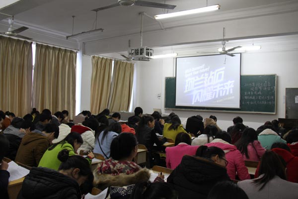 湖北辉创重型工程有限公司人力资源部部长陆恪和beat365官网商学院2015届毕业生吴吉峰分别代表招聘企业和毕业生作了发言。