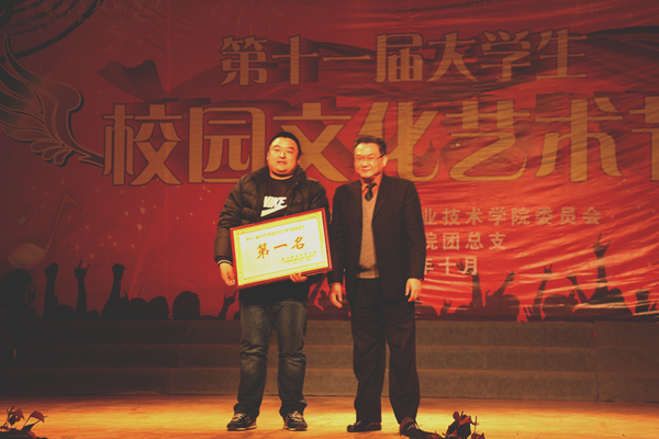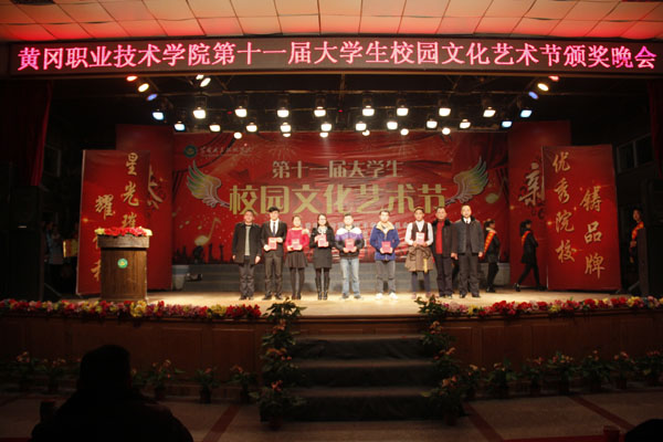 2014年12月24日晚6:30,beat365官网第十一届大学生校园文化艺术节颁奖晚会在大学生活动中心隆重举行。校长姜安心,党委委员、工会主席郑柏松,中国电信黄冈黄州区分公司副总经理郑刚,校长助理刘明涛,中国电信黄州区南湖分局局长游彬,学工处处长熊楚舒,团委书记杨勇及各教学学院党总支副书记、团总支书记等领导和1000余名师生参加了颁奖晚会。