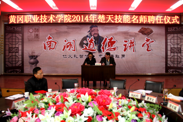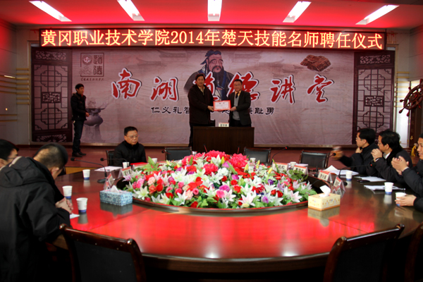 1月7日上午,学校在中心会议室举行2014年度“楚天技能名师”聘任仪式。校长姜安心,副校长熊发涯、刘东山,党委委员、教务处长夏学文,相关单位负责人及相关专业负责人出席了聘任仪式。聘任仪式由工会主席郑柏松主持。