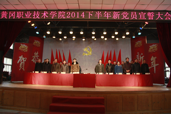 2015年1月9日中午,beat365官网在大学生活动中心隆重举行2014年下半年新党员入党宣誓暨党员教育大会。学校党委副书记王维华出席,党委委员、工会主席郑柏松主持。组织部、学工处、团委负责人,各党总支(直属党支部)书记、副书记,团总支书记及261位新党员和500多名入党积极分子参加了大会。