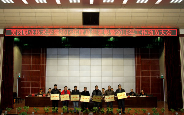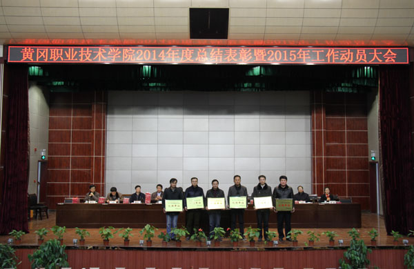 大会上,校长姜安心代表学校党委、行政作了工作报告。姜校长的报告认真回顾总结了2014年学校各项工作,充分肯定了过去的一年所取得的成绩,进一步明晰了2015年学校工作的基本思路。2015年学校工作的基本思路是深入学习贯彻党的十八大及十八届三中、四中全会精神,深入学习贯彻习近平总书记系列重要讲话精神,全面落实全国、全省职教会议精神,坚持育人为本、德育为先,深化改革、强化管理、改进作风、提质增效、创新发展,为加快建成全省领先、全国一流的高水平高职院校再续新篇。重点工作概括为六个方面。一是加强党建,改进作风,确保学校和谐稳定。巩固和深化党的群众路线教育实践活动成果,形成作风建设长效机制。深入开展全国文明单位建设工作。切实加强基层党组织建设,加强管理队伍建设。二是创新机制,规范管理,提升学校治理水平和能力。改革两级管理,稳步推进两级管理。完成学校章程等现代大学制度体系制定。启动十三•五规划编制工作。三是立德树人,全心育人,提升人才培养质量。持续深入抓好教风、学风建设。加强专业建设,调整专业结构,实行新建与淘汰结合,控制专业总数在55个左右和单个专业总规模。创新办学形式,落实五年一贯制培养,推进中高职衔接培养,开展现代学徒制试点。继续开展“职业院校企业行”活动,加大社会培训力度。加强教学条件建设,加强校内实训基地建设和管理。深化教育教学改革,大力推进以学生为中心的教学方法改革,普及推广项目教学、案例教学、工作过程导向教学和信息化教学,注重学生文化素质、科学素养、综合职业能力和可持续发展能力的培养。加强师资队伍建设,坚持教师教育教学、专业实践能力培训和达标活动,加大教师培训工作力度,加大专业教学名师培养力度。加强信息化建设,启动智慧校园建设工程。加强国际交流与合作。提升学生思想政治教育质量,强化学生职业精神培养,注重实践教育、体验教育、养成教育,推进活动育人、文化育人、实践育人,完善全员、全程、全方位育人体系。全面推行导师制。 四是提高认识,加强措施,做好招生与就业工作。对接国家招生考试改革方案,推进学校招生改革。做好就业工作,不断提高学生就业质量。 五是改革创新、加强引导,服务黄冈经济社会发展。推进“十百千万”社会服务工程。做实“十百千万”社会服务工程,主动服务黄冈中小微企业开展技术研发和改造升级。加强科研工作。以项目、基地、团队为抓手,推动广大教职工积极参与科学研究和应用科技成果的产出与转化。六是整合资源,开源节流,促进学校健康发展。加强节约型校园建设。树立全员节约意识,出台《beat365英国官方网站厉行节约暂行办法》,动员全校上下共同节约开支,公务支出年降低5%以上,水电费年降低3%。加强财源建设。积极争取生均拨款政策的落实推进工作。规范学校对经济目标单位的管理。