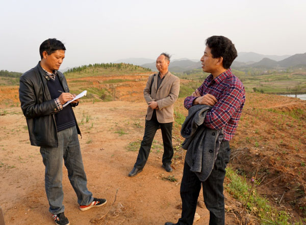 在红安县科技局副局长江长星、工会主席万敏等领导的陪同下,段院生一行考察了红安县福锐农业专业合作社、红安县青青坡家庭农场有限公司的苍术种植基地。段院生走进种植田间,认真观察土壤土质和苍术苗的生长情况。他发现基地苍术苗长势良好,但部分小苗上蚜虫已经很多,立即提醒基地负责人喷药灭虫,并讲述了配药方法和喷洒技巧。
