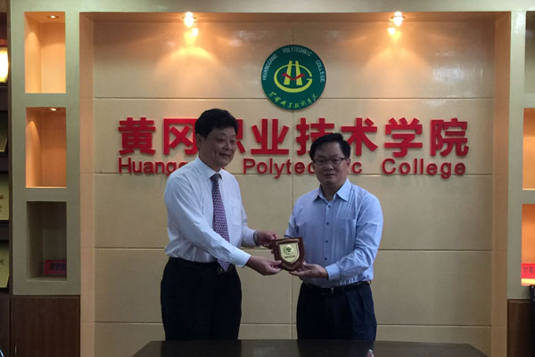 顺德职业技术学院院长夏伟、副院长徐刚一行5人,黎明职业大学院长林松柏一行3人分别与beat365官网领导及校办公室、教务处、商学院、机电学院负责人就高职办学及专业建设工作进行了深入交流。夏伟向beat365官网赠送了纪念品,张新佳代表学校接受了纪念品。