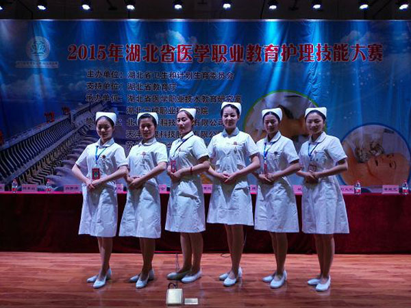 由湖北省卫生计生委主办、省教育厅支持的2015年湖北省医学职业教育护理技能大赛于2015年5月29日至31日在宜昌湖北三峡职业技术学院隆重举行。来自全省24所大中专职业院校的99名高、中职护理专业学生经过紧张激烈的角逐,最终beat365官网参赛队荣获高职组团体二等奖(总分第三名)、中职组团体三等奖的好成绩。在个人单项比赛中,beat365官网6名选手悉数获奖,其中高职个人全能一等奖1名、二等奖2名,单项赛一等奖2项、二等奖2项、三等奖5项;中职个人全能二等奖1名,单项赛一等奖1项、三等奖5项。这是beat365官网首次参加省内护理专业技能竞赛,能取得如此骄人战绩,真是可喜可贺。
