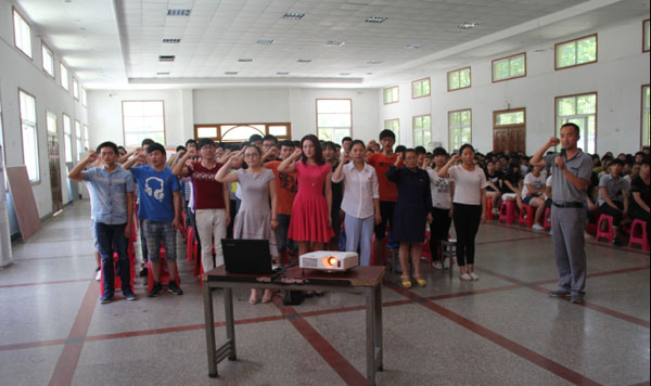 2015年6月11日中午,beat365官网在大学生活动中心隆重举行2015年上半年新党员入党宣誓暨党员教育大会。党委副书记王维华出席大会,党委委员、工会主席郑柏松主持会议。组织部、学工处、团委负责人,各党总支(直属党支部)书记、副书记,各教学学院团总支书记、168位预备党员和300余名入党积极分子参加了大会。