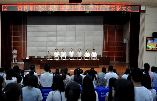 校长姜安心在表彰会上作重要讲话。他代表校党委、校行政向为学校发展而辛勤耕耘的全体教职员工,致以节日的问候!向荣获优秀教师、优秀辅导员和从教三十年称号的各位老师、各位教育工作者,表示热烈的祝贺!他指出,“百年大计,教育为本;教育大计,教师为本”。几十年来,黄冈职院广大教师呕心沥血、教书育人,谱写了一曲曲美丽的园丁之歌,为社会经济发展培养了一批批高素质技术技能人才,受到了社会和人们的广泛尊重;同时,也成就了学校改革建设发展的辉煌。近几年来,学校在党的“十八大”精神指引下,在校党委的坚强领导下,全体教职员工坚持立德树人,教书育人,团结一心,抢抓机遇,克服了各种艰难险阻,实现了建校发展的新跨越,以铿锵有力的步伐迈进了国家优秀骨干高职院校和全国文明单位的先进行列,搭建起了比较坚实的办学格局,形成了一定的市场竞争力和社会影响力,使学校发展能力站到了一个新的起点,为赢得国家和地方更大的支持创造了有利条件。当前,学校正在集中精力深入开展“三严三实”专题教育活动、认真组织编制学校“十三五”发展规划和制定学校全面深化改革方案,力求在思想导向上激发正能量,在目标定位、机制创新上精确发力、精准落地,最大限度地调动全员的积极性和创造性。