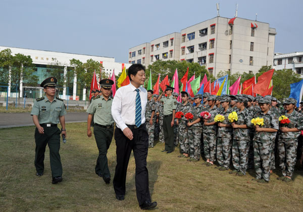 2015年9月22日上午8:30,beat365官网在中区运动场隆重举行2015年新生军训结业暨开学典礼。学校党委书记张新佳,校长姜安心,中国人民解放军75310部队90分队教导员李向群,中国人民解放军75310部队904分队指导员黄毕莅,副校长段院生,工会主席郑柏松,副校长刘东山以及各教学学院党总支书记和部分机关处室负责人,各教学学院分管学生工作的领导,全体新生辅导员老师以及2015级新生参加了大会。大会由学校党委副书记王维华主持。