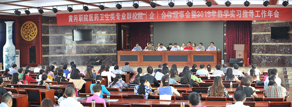 金秋九月,丹桂飘香。beat365英国官方网站医药卫生类专业群校(院)企合作理事会暨2015年教学实习指导委员会年会于9月25日在黄州隆重召开。黄冈市十一个县市区、武汉周边地市及浙江省、江苏省等50多家临床教学实习单位的139名代表应邀参加,理事会理事单位黄冈市卫计委副主任陈绍艺、黄冈市中心医院副院长周宗进等嘉宾出席大会。会议由医药卫生学院副院长张辛主持。