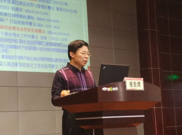 党委委员夏学文作了《深化改革,培养创新创业人才》的报告,深入解读了《国务院办公厅关于深化高等学校创新创业教育改革的实施意见》(国办发[2015]36号),指出文件是在国家加快完善社会主义市场经济体制和加快转变经济发展方式、国家经济社会发展需要创新创业人才、中国创新创业人才缺失、高校创新创业教育缺失的背景下产生的;文件的主要精神有:完善人才培养质量标准、创新人才培养机制、健全创新创业教育课程体系、改革教学方法和考核方式、强化创新创业实践、改革教学和学籍管理制度、加强教师创新创业教育教学能力建设、改进学生创业指导服务、完善创新创业资金支持和政策保障体系。夏委员还阐述了对于落实文件的十点思考:将创新创业能力培养作为培养目标和人才评价标准之一纳入人才培养方案;将创新创业能力培养贯穿于人才培养全过程;举办创新创业实验班,跨专业培养、交叉课程培养;开设创新思维培养课程,开好创业教育课程;将课程教学融入创新创业教育,培养学生批判思维和创新精神;开展创新创业活动,激发创新创业;建好创业基地,扶持学生创业;建设优秀教学团队,提高教师创新创业教育能力;实施弹性学制,放宽修业年限;成立创新创业教育领导小组、制订具体实施方案、加强宣传引导,形成鼓励创新创业文化氛围。
