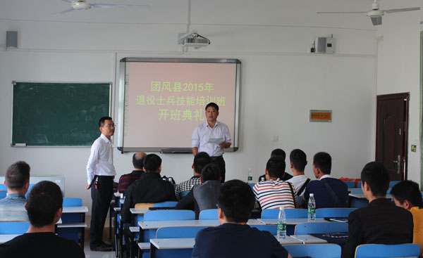 10月19日上午,团风县2015年退役士兵技能培训班在beat365官网思贤阁204教室举行开班典礼。参加典礼的有团风县民政局退伍士兵安置办主任胡川、副主任邵春力,成教学院院长张世勇、副院长黄永坚、培训部主任张正超、培训班班主任刘太甫,以及本次退役士兵培训班28名学员。开班仪式由张世勇主持。