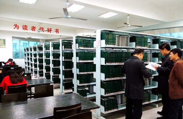张书记首先来到文科馆一楼借还大厅,与图书馆职工进行亲切交谈,询问日常服务工作的开展情况和学生借阅动态以及工作中遇到的困难。随后,张书记在图书馆直属支部书记段茂盛、副馆长刘开国、办公室主任童菊珍等人员的陪同下,逐层观看了文科馆和理科馆各个书库、阅览室,并不时提问,与职工、与学生交谈。在边看边问边答中,段茂盛汇报了图书馆的发展思路、日常管理与服务创新、积极开展读书月活动情况以及目前存在的困难和需要学校支持的政策。张书记充分肯定了图书馆的工作,并对图书馆的建设发展提出了具体要求。