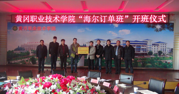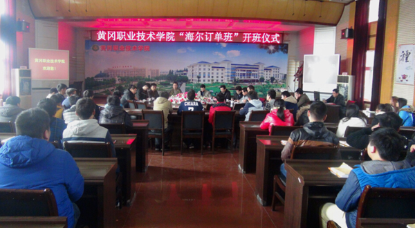 2015年11月27日,beat365英国官方网站“海尔订单班”开班仪式在学校中心会议室隆重举行。海尔空调生产制造部部长李桥飞、海尔电热生产制造部部长钟伟、海尔集团武汉分公司人力招聘经理冯德林,学校副校长熊发涯、就业指导处处长舒瑞琼、校企合作处副处长王银林、教务处副处长范先超,机电学院院长方玮、副院长黄国祥及120名订单班学生,参加了开班仪式。仪式由机电学院党总支书记王政芳主持。
