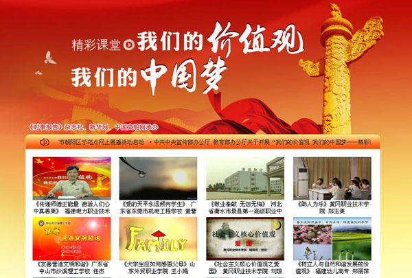 为贯彻落实中共中央办公厅印发的《关于培育和践行社会主义核心价值观的意见》(中办发〔2014〕24号),激励和引导广大青少年自觉践行社会主义核心价值观,为实现中华民族伟大复兴的中国梦贡献力量,2014年中央宣传部、教育部决定开展“我们的价值观 我们的中国梦——精彩课堂”网上展播活动,并在全国高校中征集展播作品。