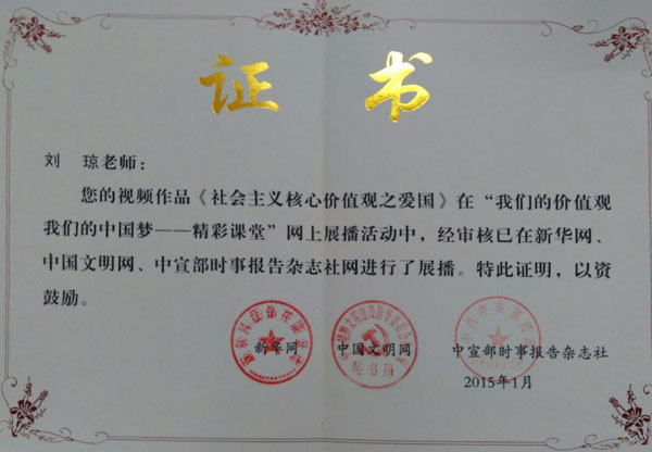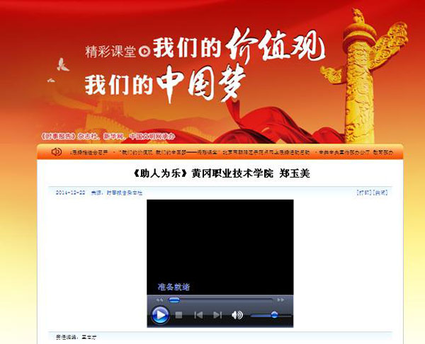 beat365官网积极组织教师参加“我们的价值观 我们的中国梦——精彩课堂”申报。经过遴选,思政课部郑玉美老师的《助人为乐》作品,电子信息学院刘琼老师的《社会主义核心价值观之爱国》作品成功入选并在网上展出,反响良好。