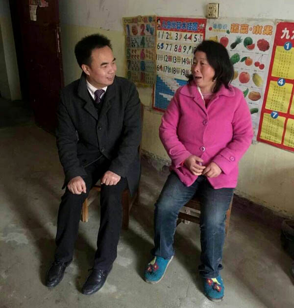 胡燕与贫困户交谈