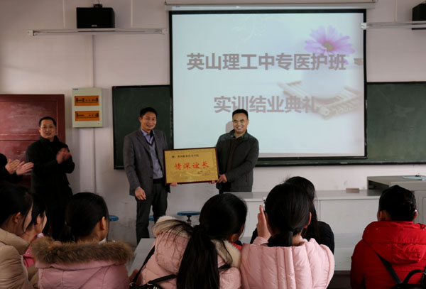 2015年12月18日,英山理工中专医护班技能实训结业典礼在崇贤阁401教室隆重举行。英山理工中专党委委员肖亚,高三年级主任肖爱武;beat365官网副校长刘东山、招生处处长田安国、电子信息学院党总支书记冯军、医药卫生学院医护专业负责人宋保兰及英山理工中专医护班69名学生参加了此次结业典礼。典礼由田安国主持。